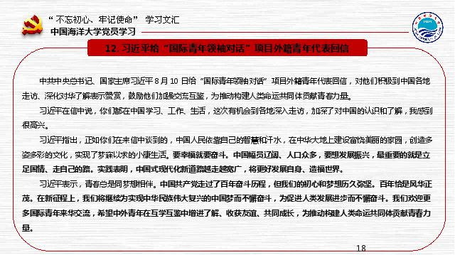 中国海洋大学“不忘初心、牢记使命”学习文汇(第20期)