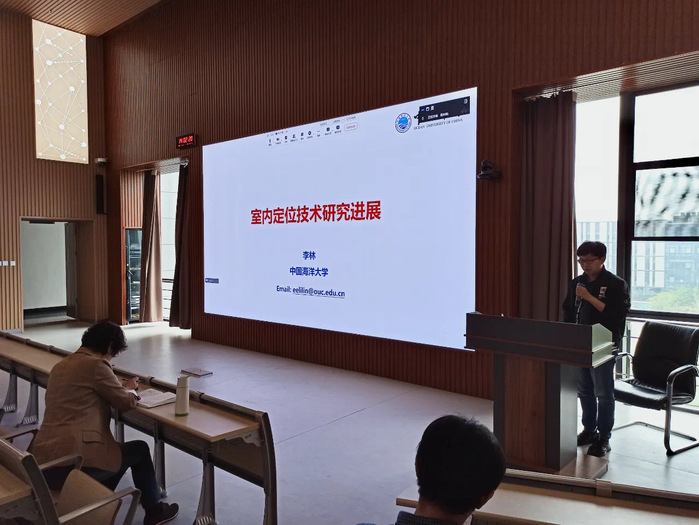 “谈学”环节中,电子工程学院教师李林作了学术报告分享。他详细阐述了几何定位、惯性导航定位和机器学习定位三种方法的优缺点。随后,展示了最新研究成果:通过融合和迁移学习技术,在地下停车场等复杂环境下实现了单站非视距条件下的稳健定位估计。最后,李林展望了室内定位技术在6G通信和大模型背景下的发展前景。