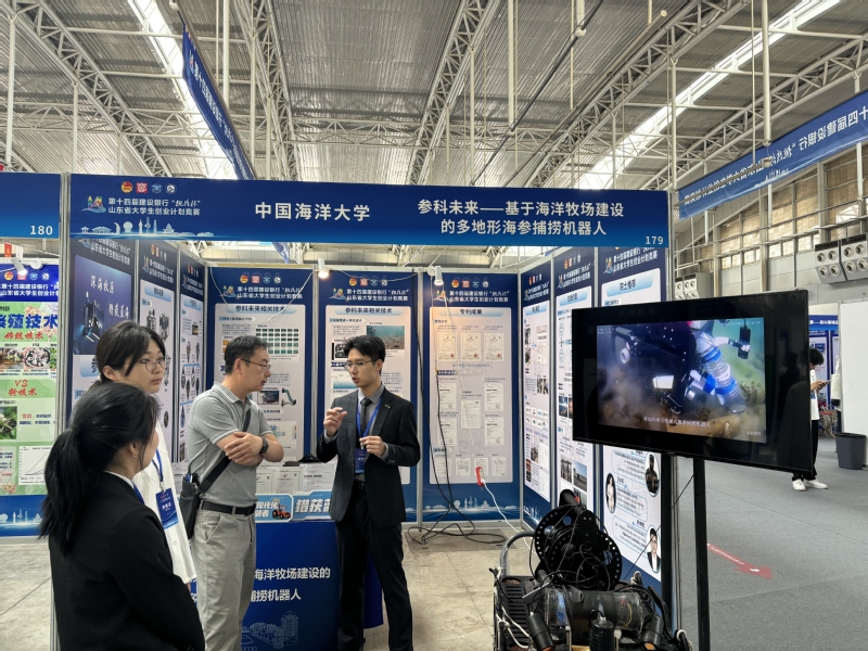 经过激烈角逐,本届竞赛最终产生金奖154项、银奖251项、铜奖597项。其中,信息科学与工程学部2021级计算机科学与技术专业本科生段仕英负责的项目“参科未来——基于海洋牧场建设的多地形海参捕捞机器人”,在第十四届“挑战杯”山东省大学生创业计划竞赛中荣获金奖。