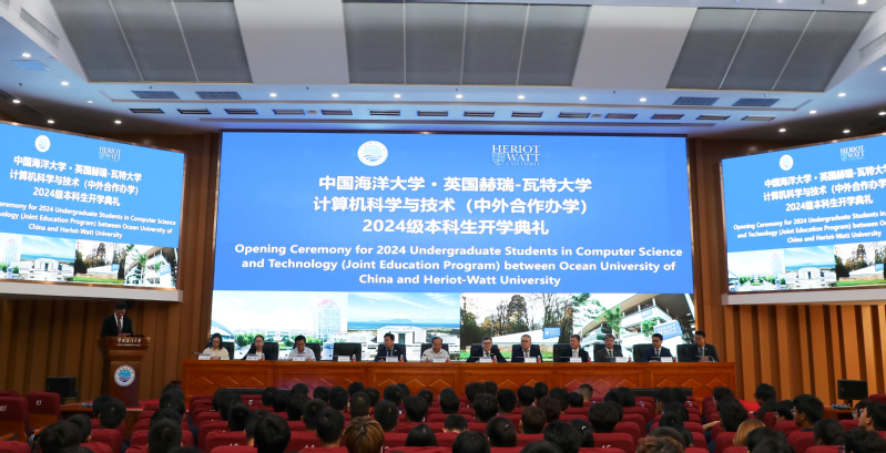9月9日下午,中国海洋大学·英国赫瑞-瓦特大学计算机科学与技术(中外合作办学)2024级本科生开学典礼在崂山校区隆重举行。英国赫瑞-瓦特大学校长Richard A. Williams、中国海洋大学党委副书记卢光志出席典礼,信息科学与工程学部部长董军宇主持典礼。