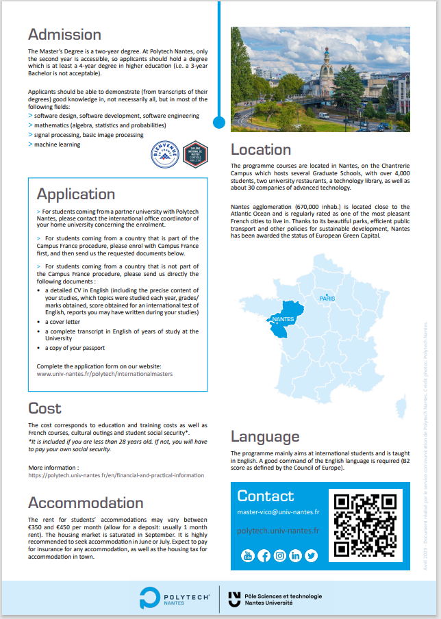 1.推免生:符合教育部推荐免试规定条件的应届本科毕业生,并获得所在学校的推荐免试资格;具有计算机相关专业的本科学业背景;英语水平较好,能适应在法期间全英文授课环境。
