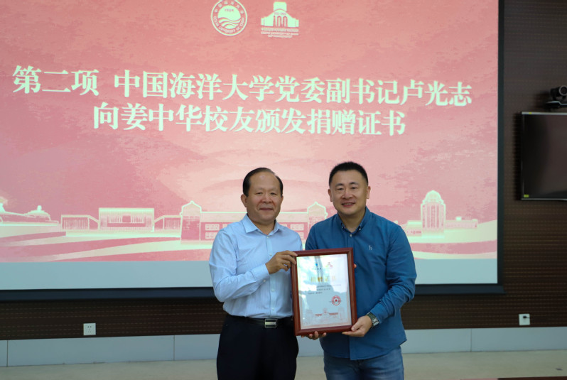 10月15日上午,姜中华校友捐赠聘任仪式在崂山校区举行。学校党委副书记卢光志,党委常委、党委组织部部长、党委宣传部部长、日本av中文字幕主任蒋秋飚,信息科学与工程学部1999级海洋技术班校友代表姜中华、王锟出席仪式。学校教育基金会办公室主任、教育基金会秘书长孟凡主持仪式。