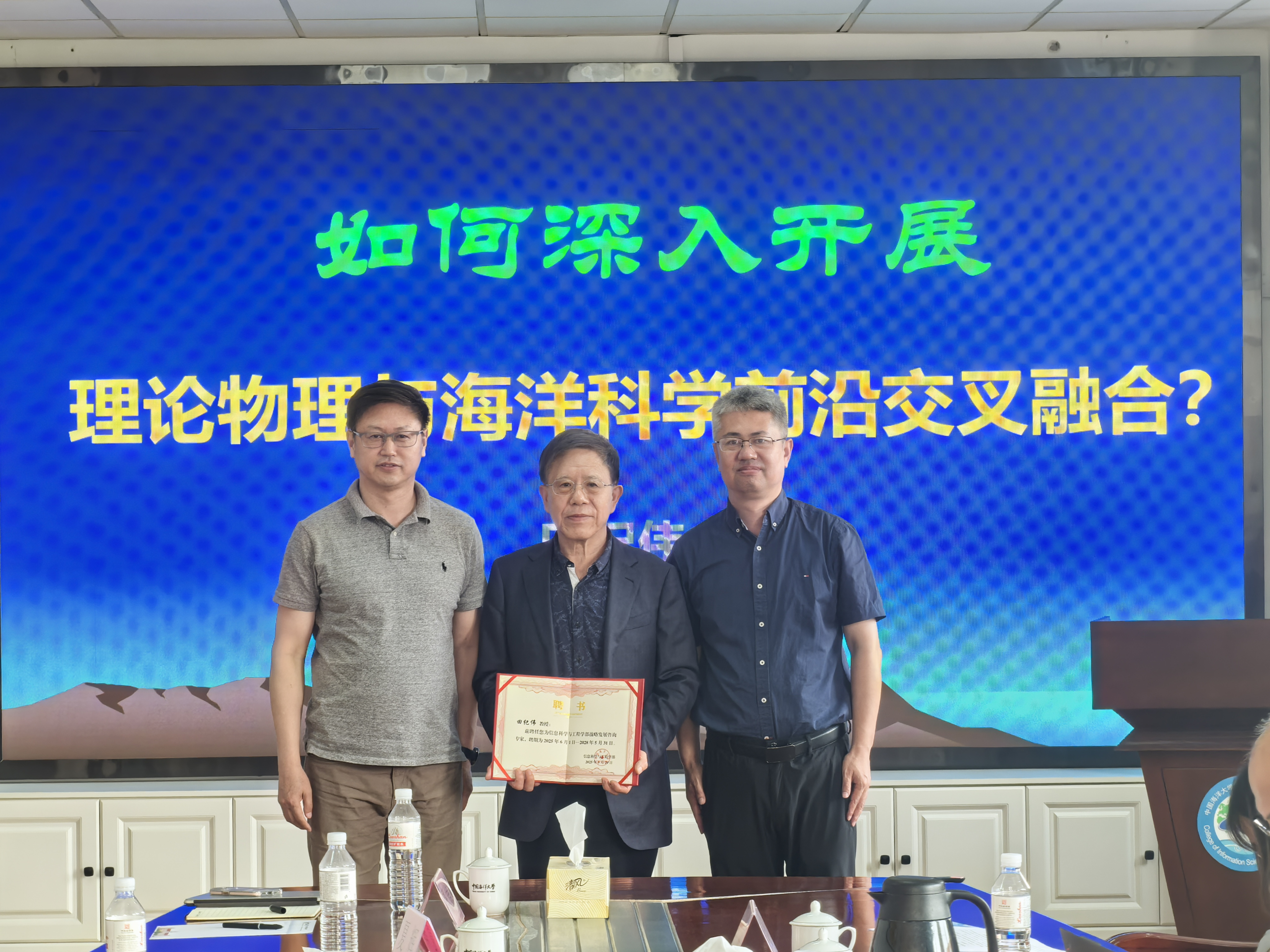 聘任仪式上,张永胜代表学部向田纪伟教授颁发聘书,热烈欢迎田纪伟教授指导学部工作。张永胜指出,当前信息学科与海洋学科深度融合处于关键期,亟需顶尖智慧引领方向田纪伟教授在物理海洋学领域成就卓著,必将为学部优化学科布局、推动创新发展注入强大动力。田纪伟教授表示将紧密围绕国家海洋强国建设重大需求,结合自身专长,积极建言献策,为提升学部核心竞争力贡献力量。
