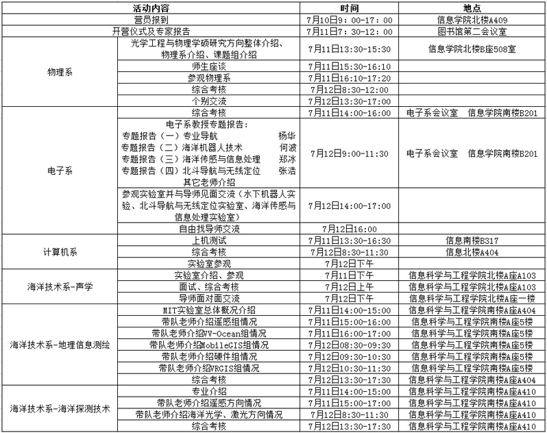 信息科学与工程学院分营日程安排