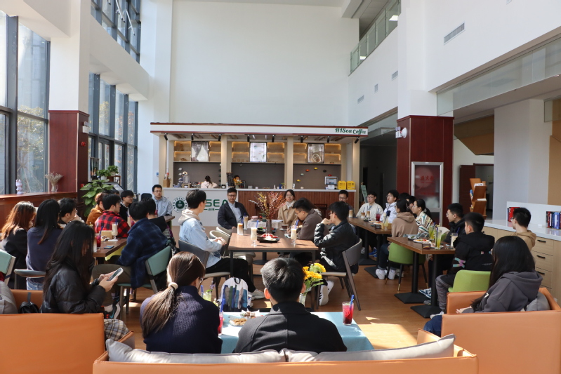 阳光和煦,咖啡飘香,活动现场气氛轻松融洽。董军宇部长分享了计算机科学与技术学院本科各专业的发展历史和人才培养目标,勉励同学们要主动顺应时代需求,结合自身专业建功立业。董军宇部长介绍了自己的研究方向、实验室情况和目前取得的成果,引起了同学们的浓厚兴趣,同学们纷纷表达了强烈的参与科研训练的意愿。随后,董军宇部长从自己在赫瑞瓦特大学攻读博士学位的经历和感受引入,为同学们分享了国外留学经验。