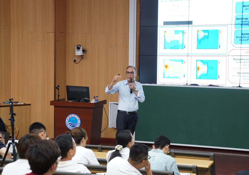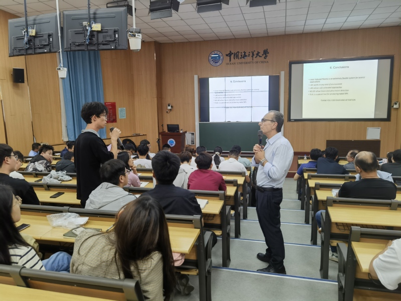 7月2日上午,Alessandro De Giacomo教授在崂山校区教学楼八区8101教室作了题为“Laser-induced plasma dynamics: from atomic and molecular spectra to particle formation”的学术报告,报告由学部物理与光电工程学院郑荣儿教授主持,来自山东大学、中国海洋大学、青岛大学、齐鲁工业大学、中国科学院海洋研究所、中国科学院青岛生物能源与过程研究所、青岛海洋科技中心等多家单位的60余名教师、研究生和本科生参加了本次报告。De Giacomo教授针对激光诱导等离子体(laser-induced plasma)相关领域的基础理论、关键技术和典型应用进行了详细的讲解,引起了参会师生的浓厚兴趣及热烈讨论。