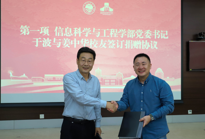 10月15日上午,姜中华校友捐赠聘任仪式在崂山校区举行。学校党委副书记卢光志,党委常委、党委组织部部长、党委宣传部部长、日本av中文字幕主任蒋秋飚,信息科学与工程学部1999级海洋技术班校友代表姜中华、王锟出席仪式。学校教育基金会办公室主任、教育基金会秘书长孟凡主持仪式。