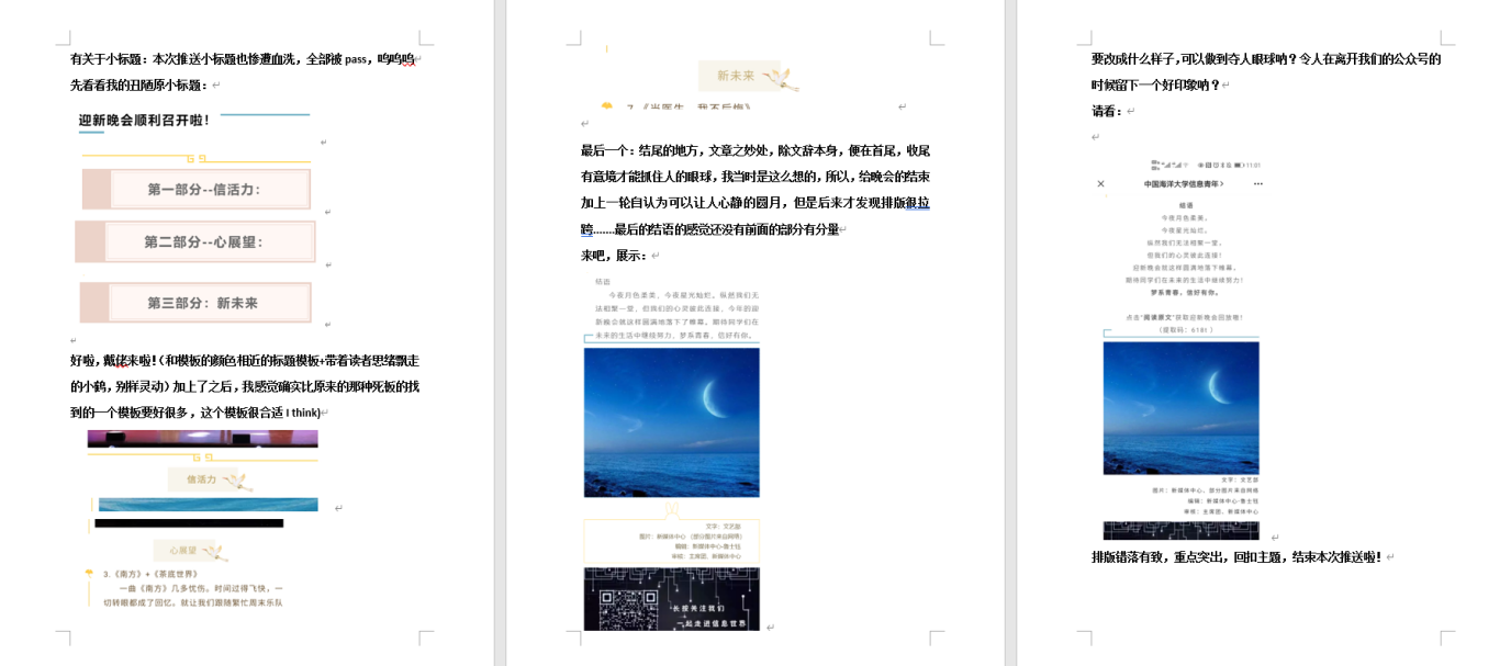 1.部门负责人应当在假期商议好具体节目内容,使排练更加从容。提前做好时间规划,按照时间顺序有条理地进行策划安排。