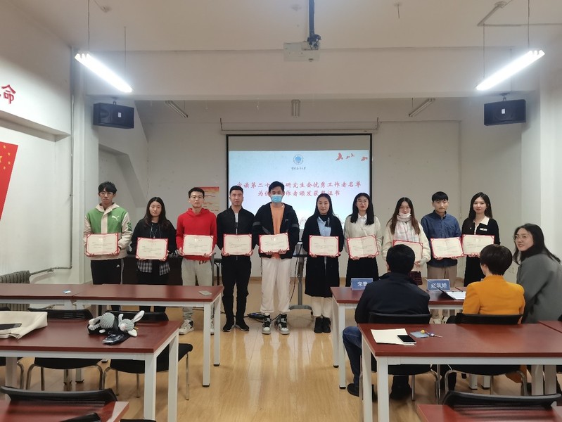 赵凤娇宣读了第二十三届研究生会优秀工作者名单和第二十四届信息研会成员名单,于瑶为优秀工作者颁发证书。