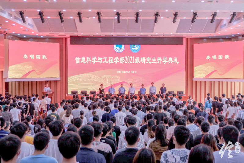 2021年9月30日,中国海洋大学信息科学与工程学部2021级研究生开学典礼在崂山校区海洋科技大楼国际报告厅举行。信息科学与工程学部党委书记于波,部长魏志强,副部长郭忠文,党委副书记宋青,物理与光电工程学院院长元光,计算机科学与技术学院院长董军宇,电子工程学院副院长任新敏,海洋技术学院副院长林巨出席典礼。典礼由宋青主持。学生工作负责人、本科生辅导员、辅导员助理以及2021级500余名硕士生新生参加了典礼。